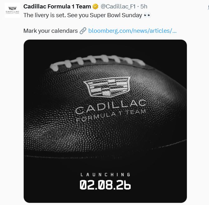 A lo grande, así es como Cadillac, el equipo que debutará en la próxima temporada de la Fórmula 1 y en la que correrá el mexicano Sergio Pérez, presentará su primer monoplaza, pues lo hará durante uno de los eventos deportivos más importantes: el Super Bowl.