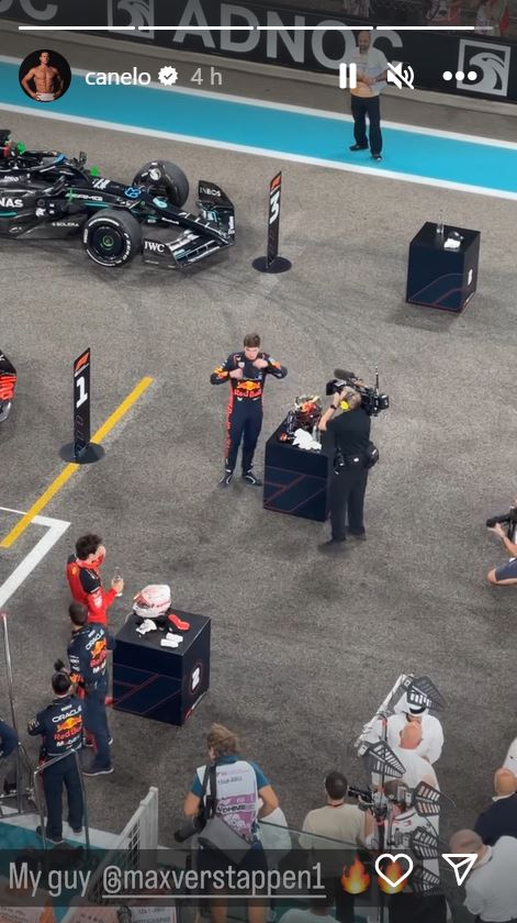 En sus publicaciones, el pugilista tapatío no dudó en expresar su apoyo al compañero de equipo de Checo Pérez, pues lo grabó luego de que concluyera la carrera y colocara su monoplaza en el sitio del ganador. Dicha grabación la acompañó con la frase "mi chico, Max Verstappen".