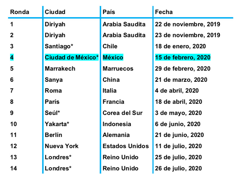 El E-Prix se realizará el 15 de febrero de 2020, en el Autódromo Hermanos Rodríguez.