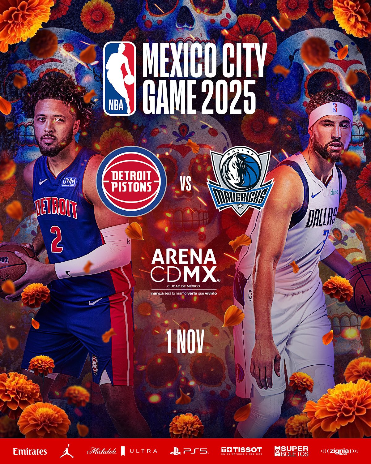 “Los Mavericks y los Pistons son dos equipos emocionantes que combinan estrellas consolidadas y jóvenes promesas. Esperamos darles la bienvenida nuevamente a México y celebrar una vez más el Día de Muertos con los apasionados fans de la NBA en México y en toda Latinoamérica”, compartió Raúl Zárraga, vicepresidente senior y responsable de operaciones en NBA Latinoamérica.