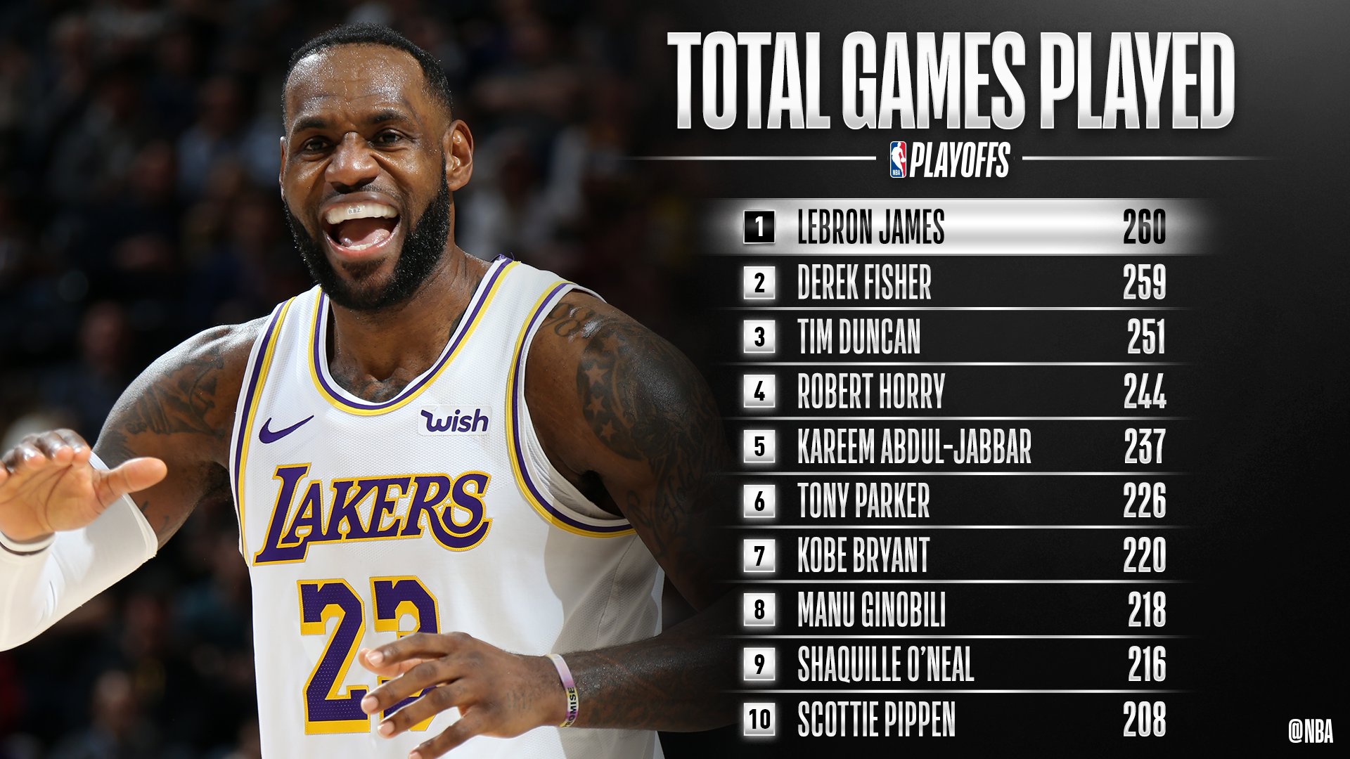 El exjugador de los Cleveland Cavaliers ahora suma 260 partidos disputados, quebrando el empate que mantenía con Derek Fisher, quien en su carrera jugara con franquicias como los propios Lakers, Mavericks y Oklahoma.
