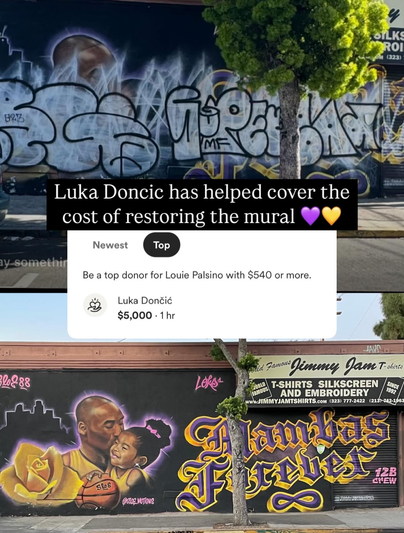 Luka Doncic donó una fuerte cantidad de dinero para restaurar un mural de Kobe Bryant y su hija