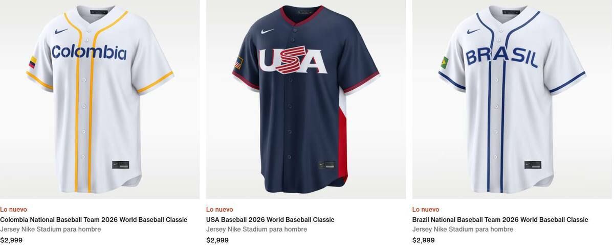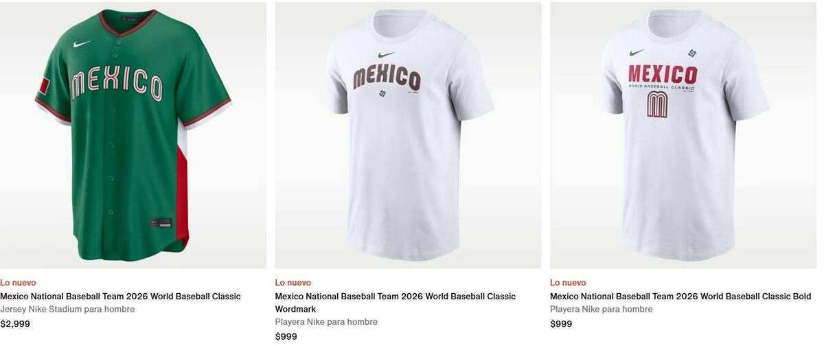 Nike también ofrece un par de playeras de México en el Clásico Mundial de Beisbol, mismas que son de color blanco y su costo asciende a los $999.