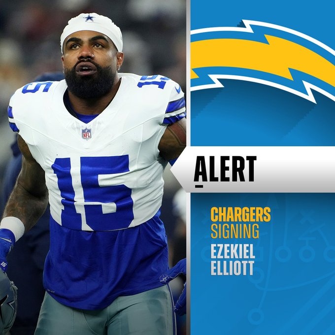 Ezekiel Elliott, excorredor estelar de los Dallas Cowboys, firmó este lunes como nuevo jugador de Los Angeles Chargers a partir de este sábado, en el comienzo de los Playoffs de la temporada 2024 de la NFL.