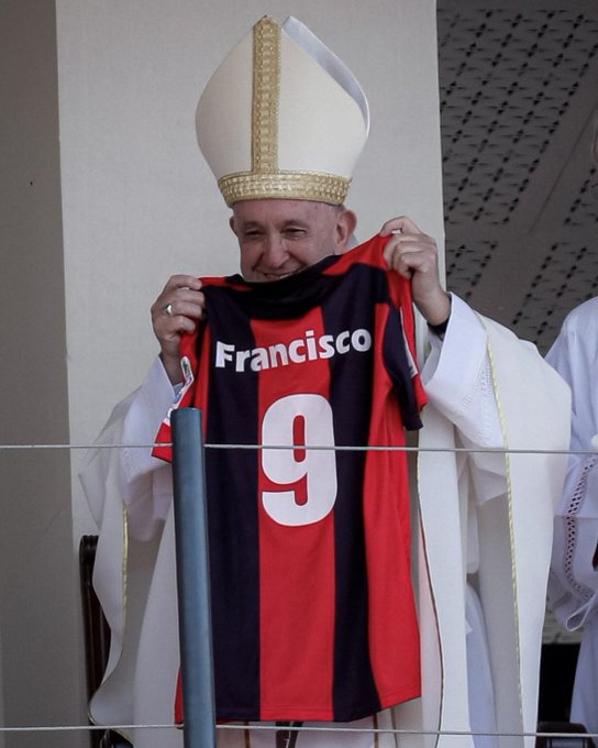 Los colores del club son los mismos del manto de la Virgen María Auxiliadora, advocación mariana muy querida por el sumo pontífice y cuya imagen también se venera en la capilla San Antonio.