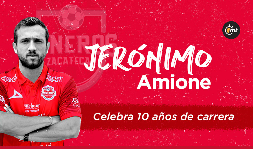 Fue el 4 de abril del 2010 cuando Jerónimo Amione debutó como profesional en el Ascenso MX defendiendo los colores del Atlante UTN, y un 31 de marzo el día que nació en la Ciudad de México. Hoy cumple 30 años y actualmente defiende la camiseta de Mineros de Zacatecas, el octavo club en su carrera que está por cumplir una década.