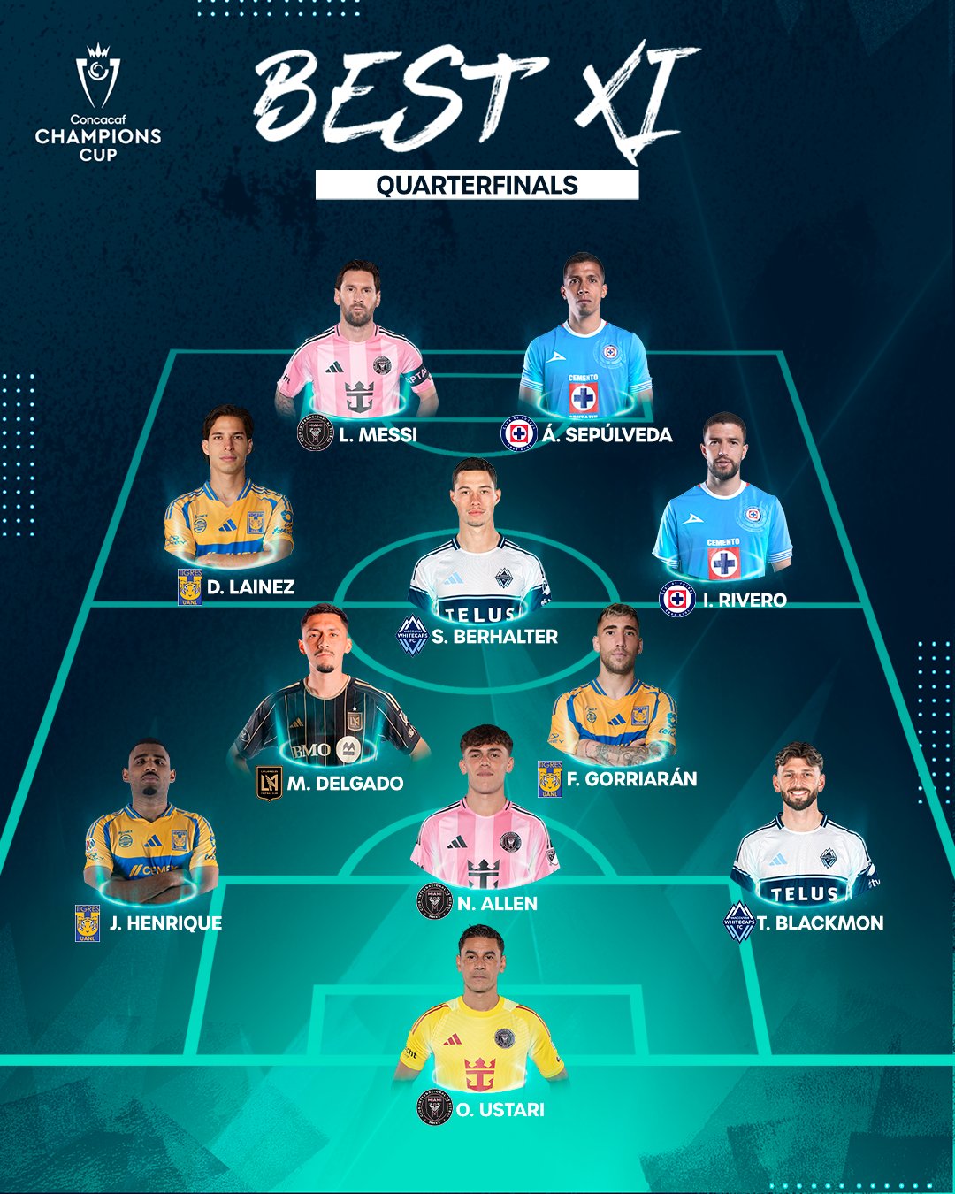En el sector defensivo están Noah Allen (Inter Miami), Tristan Blackmon (Whitecaps) y el futbolista de Tigres Joaquim. El mejor portero de la serie fue Óscar Ustari, un viejo conocido del futbol mexicano.