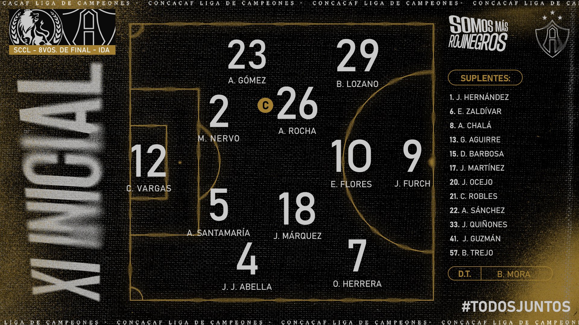Atlas debuta a las 19:00 horas en el Estadio Olímpico Metropolitano de San Pedro Sula, en la Ida de los Octavos de Final de la Concachampions, la Vuelta será el martes en el Estadio Jalisco.