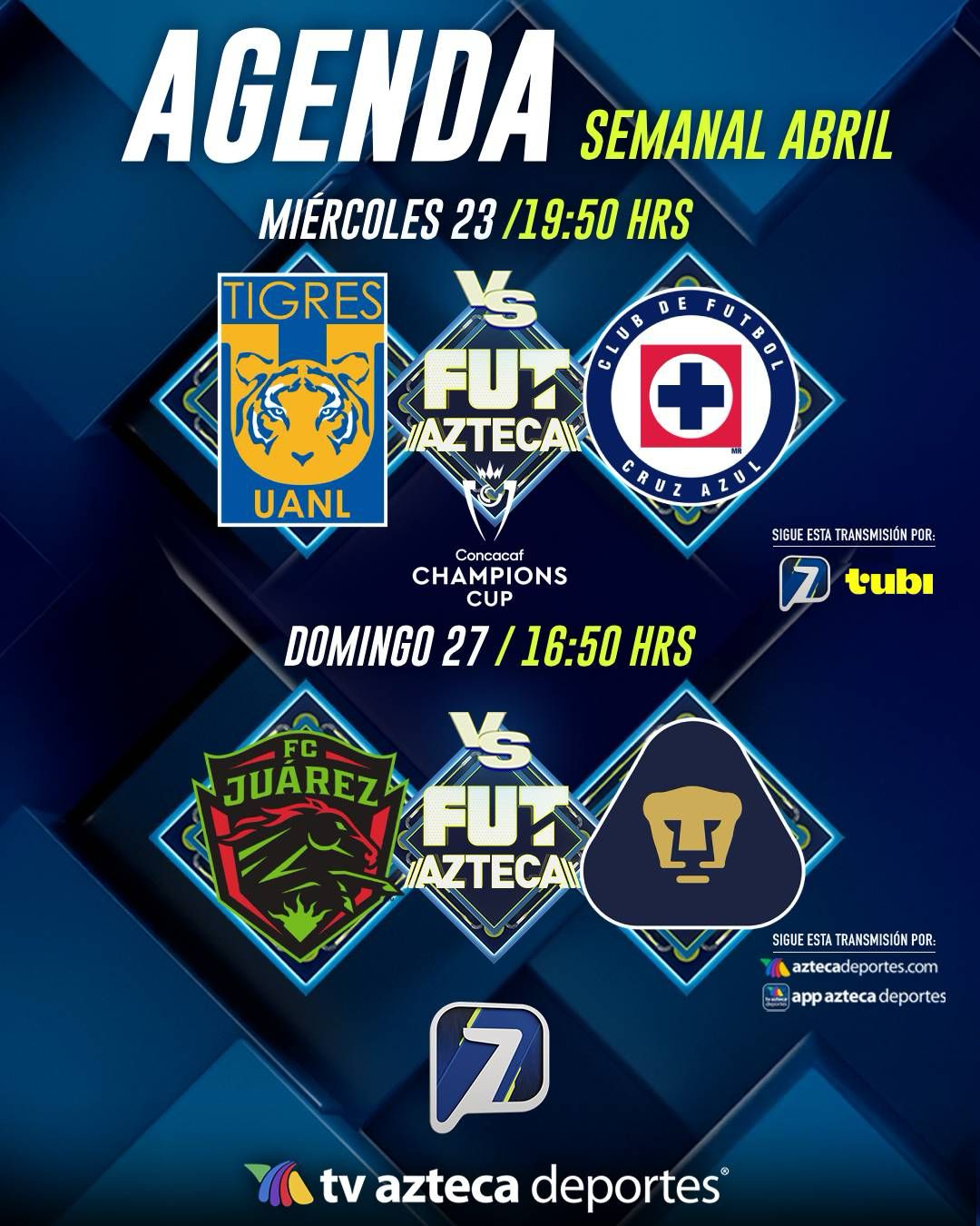 Además de la Concachampions, TV Azteca adelantó que se verá en sus pantallas el partido entre Juárez y Pumas de Play In; los fronterizos son transmitidos también por Tubi TV, por lo que es un nuevo acuerdo entre ambas empresas.