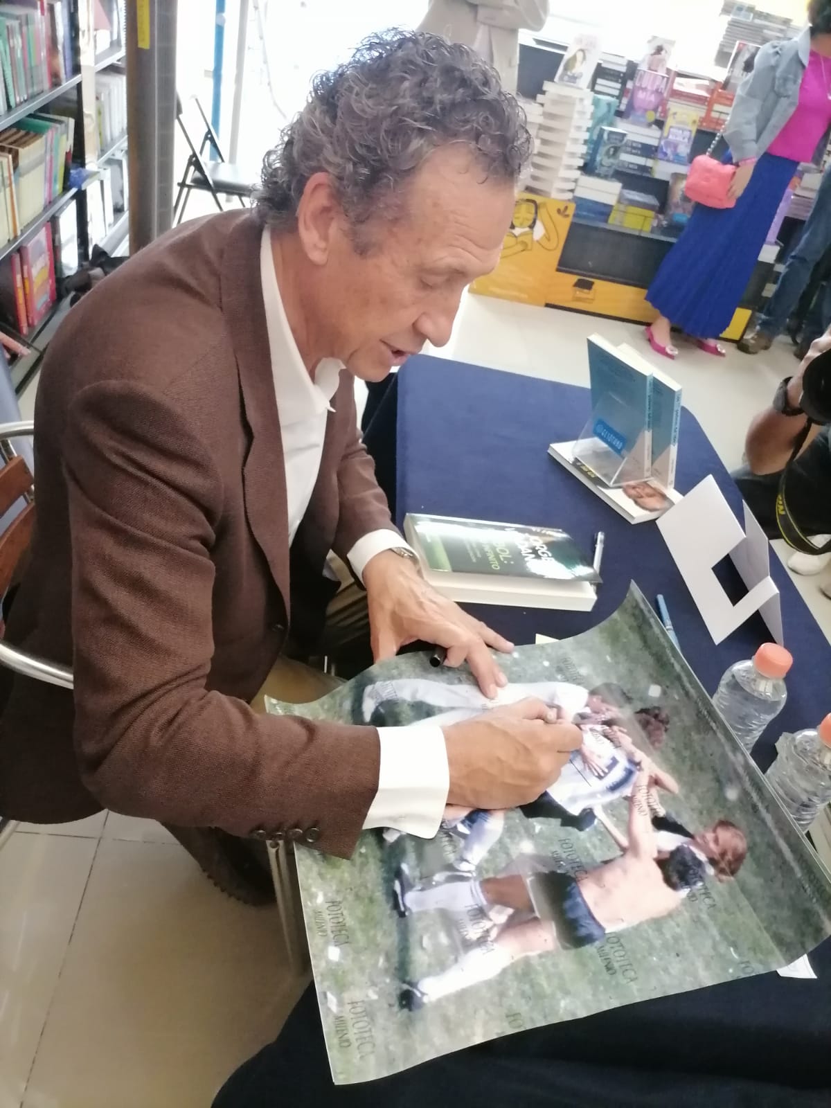 El histórico de la Selección Argentina, que ganó el Mundial de México 86, autor de Futbol: El Juego Infinito y Los 11 poderes del líder, entre otros títulos, acudió a una popular librería en Miguel Ángel de Quevedo para una firma de sus libros.
