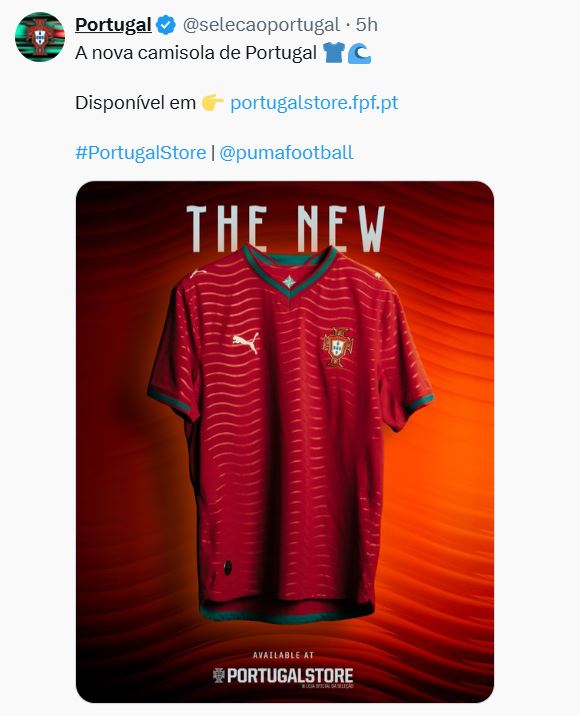 Según un comunicado de la Federación Portuguesa de Futbol (FPF), la prenda "evoca la energía del océano y la intensidad de una selección lista para estar presente en el mayor escenario futbolístico del mundo".