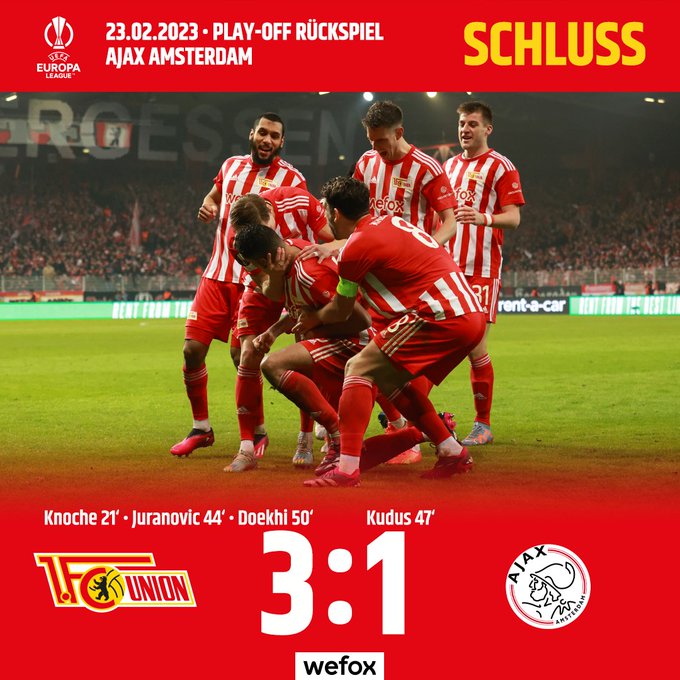 Así se confirmó el adiós del Ajax, mientras que el Unión Berlín espera rival en los Octavos de Final de la Europa League.
