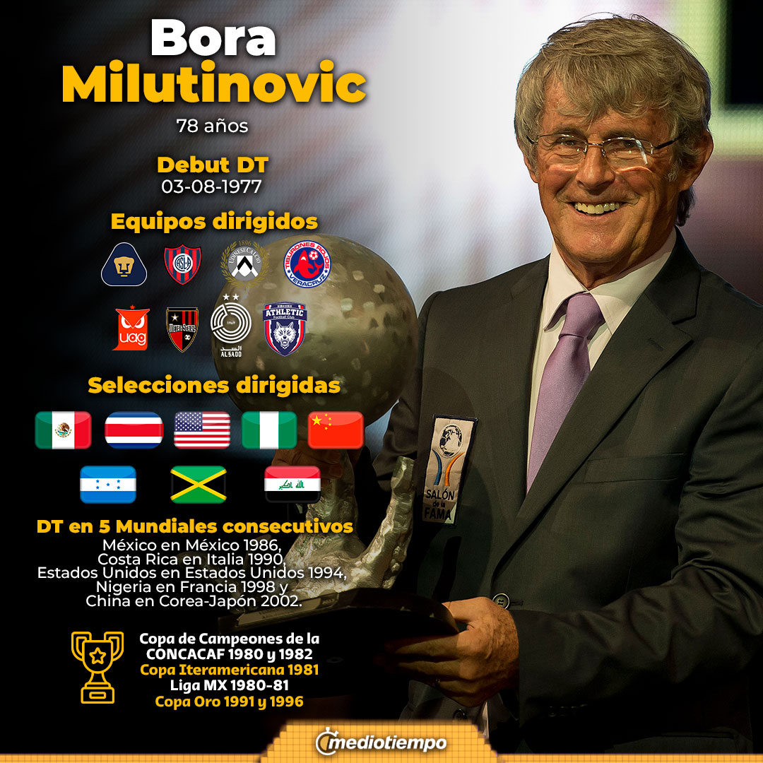 Bora es un extécnico serbio que ha dirigido en cinco Copas del Mundo: a México en 1986, Costa Rica en 1990, Estados Unidos en 1994, Nigeria en 1998 y China en 2002.