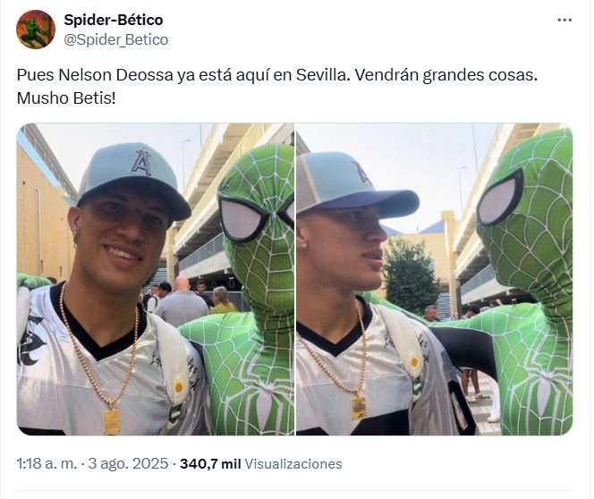 El exjugador de la Liga MX fue recibido en la ciudad española por varios aficionados del club verdiblanco, los cuales no perdieron la oportunidad de entregarle una bufanda del club para que posara con ella, situación a la que accedió el cafetalero, el cual también se fotografío con el afamado personaje Spiderman bético.