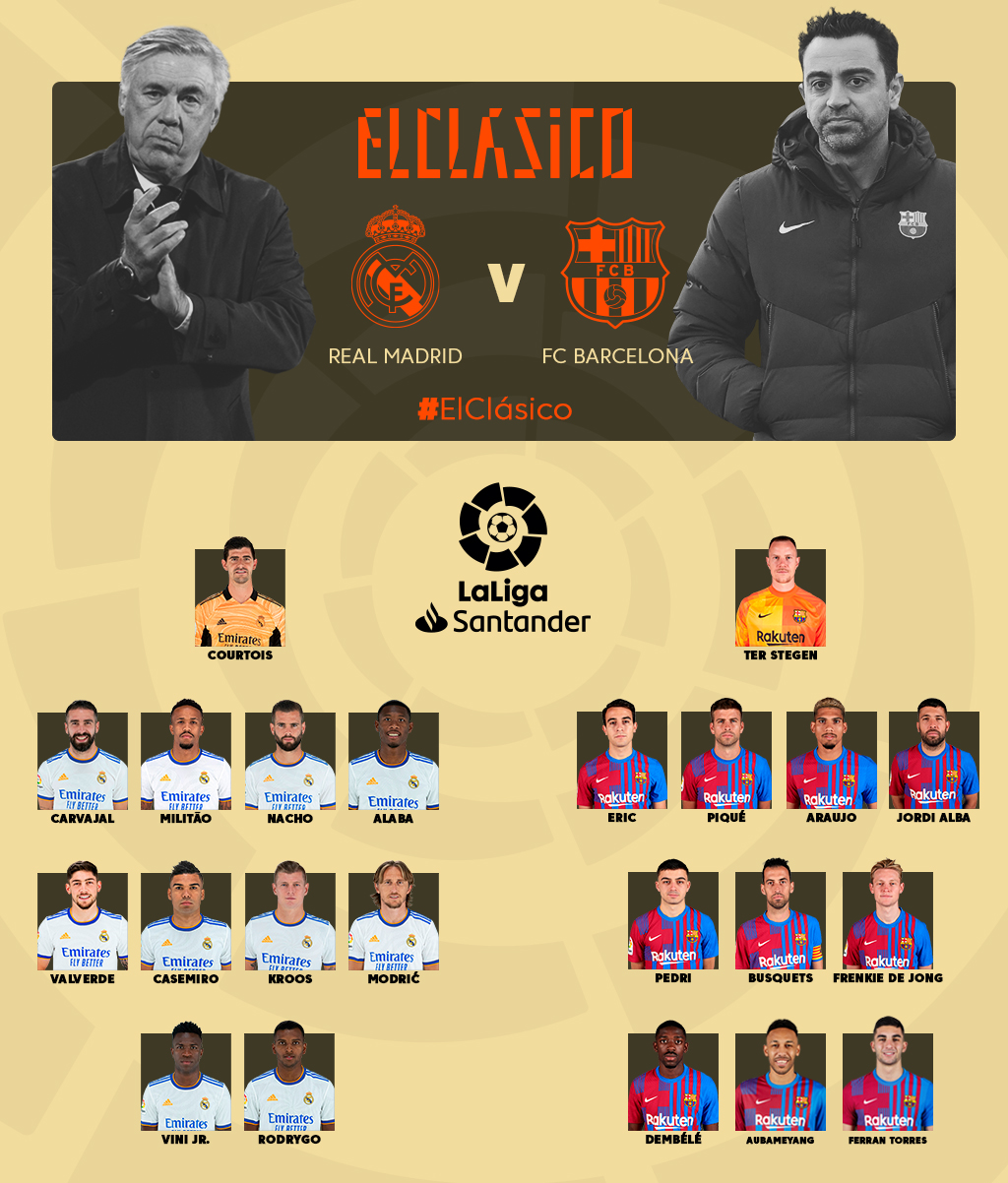 Llegó el momento, el Clásico Español está por disputarse y Real Madrid y Barcelona ya presentaron las alineaciones con las que saltarán al campo del Santiago Bernabéu para el choque que paraliza a aficionados de todo el globo.
