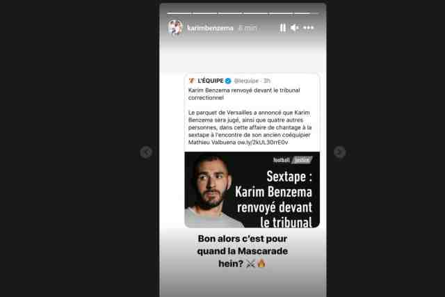 "Bueno, entonces ¿para cuándo es la mascarada, eh?", reaccionó en Instagram el delantero, que deberá responder de un presunto delito de "complicidad en intento de chantaje", pasible con hasta cinco años de prisión y 75.000 euros de multa. De momento no se fijó fecha para el juicio, en el que hay otros cuatro acusados.