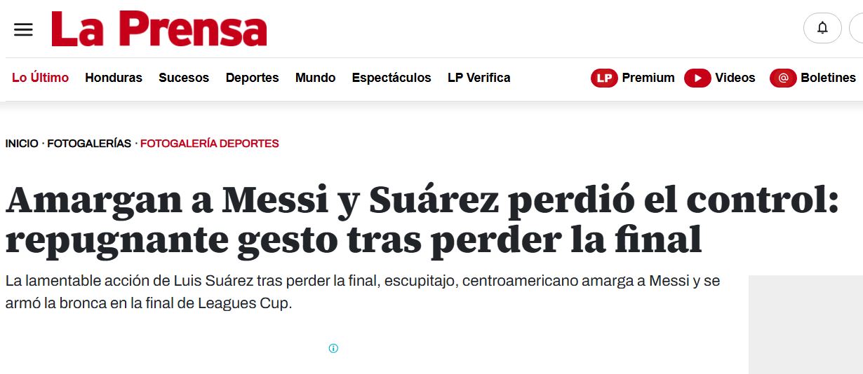 En Honduras, el medio La Prensa calificó el comportamiento del uruguayo como un "repugnante gesto" y como "lamentable acción" la que tuvo el exjugador del FC Barcelona.