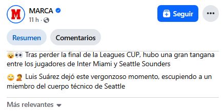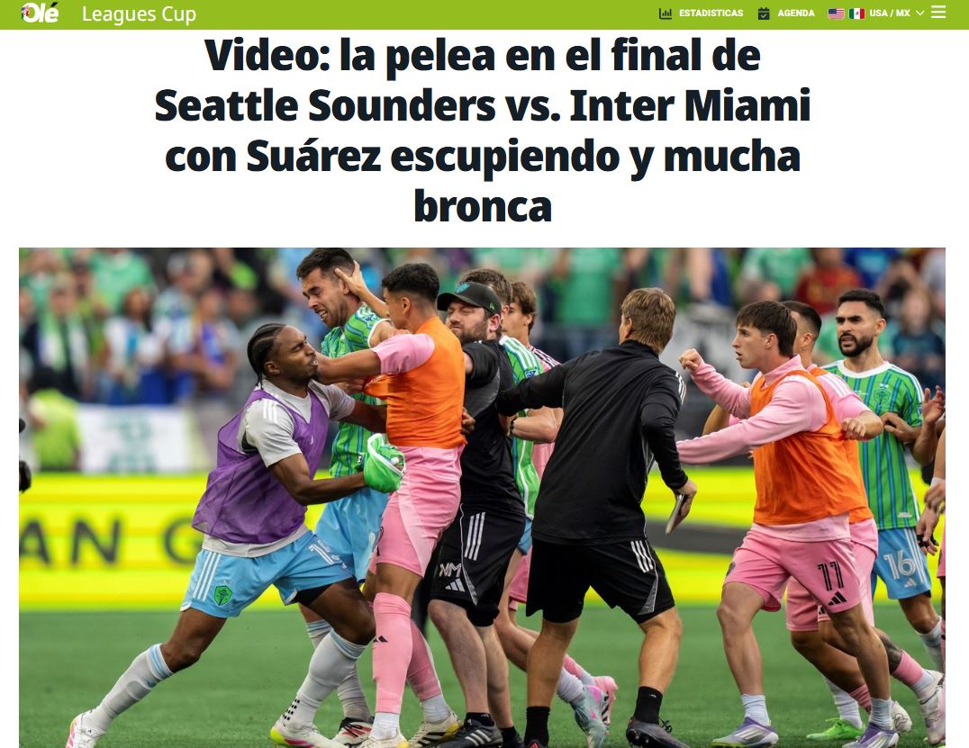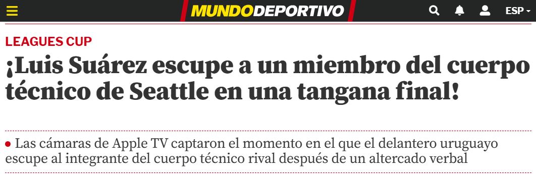 Por su parte, Mundo Deportivo tituló su nota sobre el suceso: "¡Luis Suárez escupe a un miembro del cuerpo técnico de Seattle en una tangana final!".