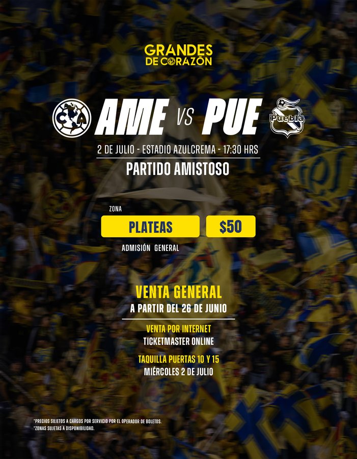 Las Águilas dieron a conocer que las entradas para el duelo ante Puebla tendrán un costo de 50 pesos y en Especial Club 165; la venta general comenzó este jueves.