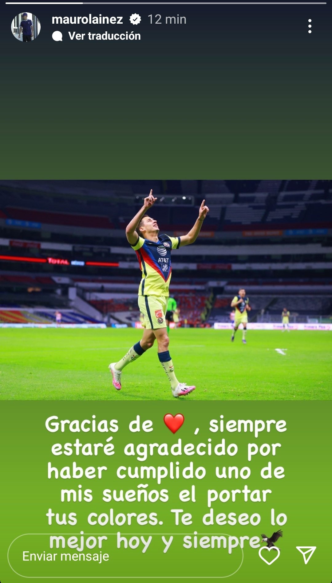 Se trata de Mauro Lainez, quien de momento ya se despidió de la afición de las Águilas en su cuenta de Instagram, publicando un mensaje en el que asegura que 'cumplió un sueño' al portar la camiseta del cuadro capitalino.