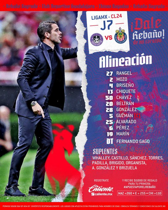 Por tal motivo, Fernando González toma el lugar del Guti en el medio campo rojiblanco y Pavel Pérez es ofensivo en Chivas.