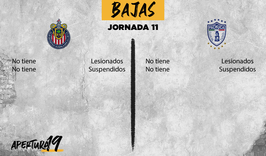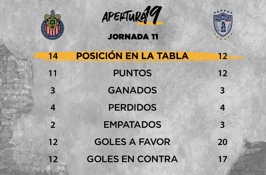 Tras perder ante Morelia en la Jornada 10, Chivas volverá a su casa, lugar donde ha conseguido las tres victorias que suma en el Apertura 2019, sin embargo recibirá a Pachuca, que no pierde en la casa del Rebaño desde hace cuatro años, y que llega motivado tras golear 4-1 a Xolos en el Estadio Hidalgo.
