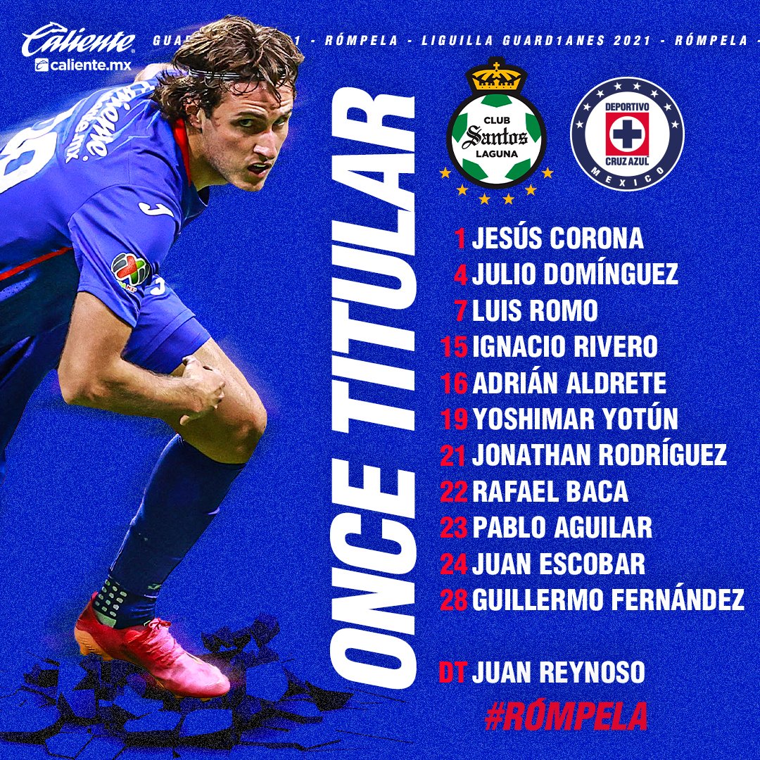 Juan Reynoso, entrenador de Cruz Azul, conformó su once con José de Jesús Corona en el arco, cinco defensores: Adrián Aldrete, Julio César Domínguez, Pablo Aguilar, Juan Escobar e Ignacio Rivero.
