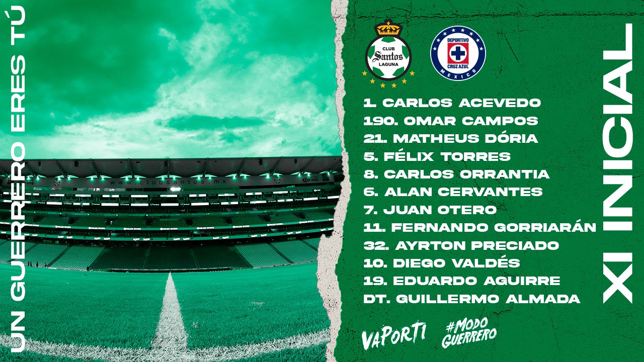 El técnico Juan Reynoso manda una línea de cinco defensores para contener al peligroso ataque de Santos Laguna, que intentará sacar ventaja en casa.