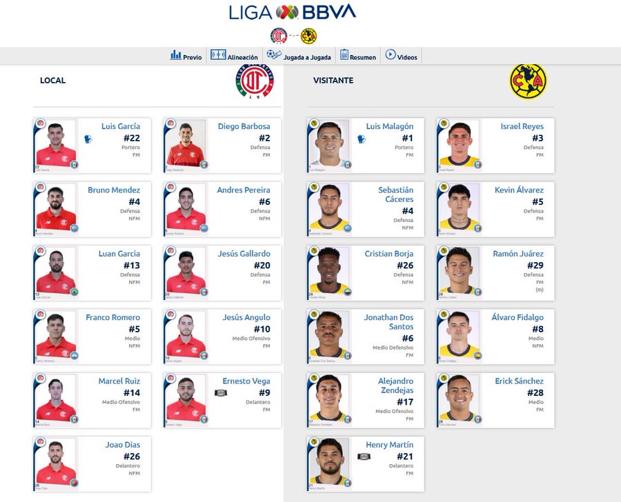 Toluca: Luis García, Diego Barbosa, Bruno Méndez, Andrés Pereira, Luan García, Jesús Gallardo, Franco Romero, Jesús Angulo, Marcel Ruiz, Ernesto Vega y Paulinho.