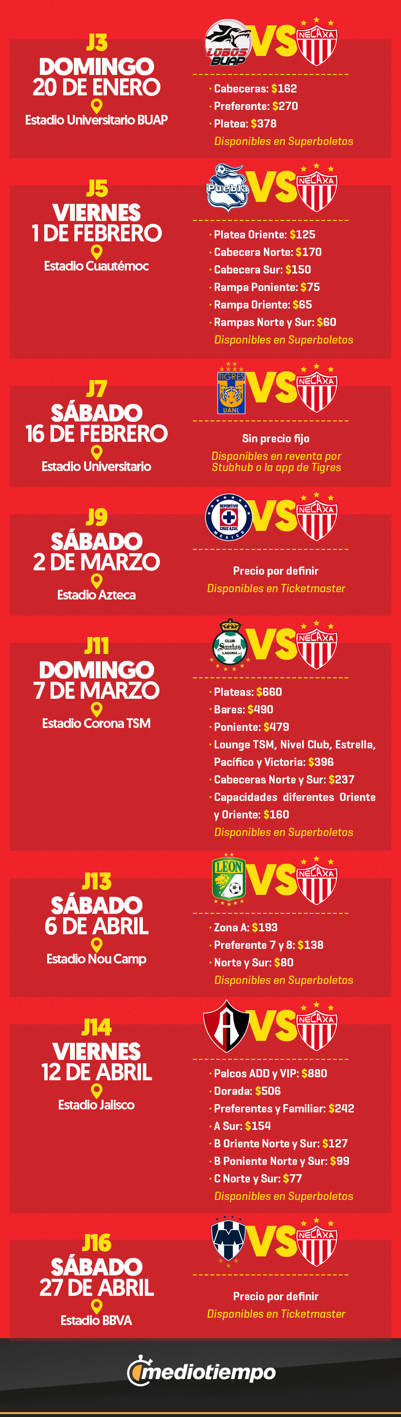Serán ocho jornadas las que los Rayos del Necaxa salgan de casa y los precios oscilan entre los 80 y 880 pesos