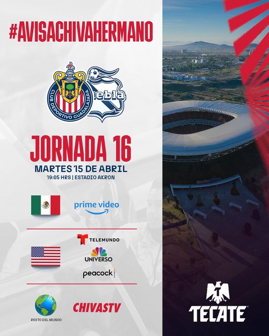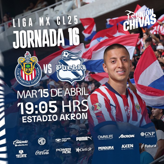 Chivas enfrentará a Puebla este martes en punto de las 19:05 horas en el Estadio Akron.
