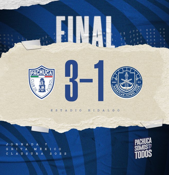 Pachuca mantiene el buen paso en el Torneo Clausura 2022 y esta noche en la apertura de la Jornada 7, los Tuzos se impusieron a Mazatlán FC y se colocaron momentáneamente en el liderato de la temporada con 16 puntos y a falta de que juegue Puebla, Cruz Azul y Tigres equipos que le pueden dar alcance.