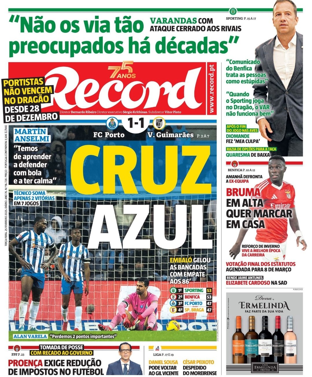 Con dos triunfos en siete partidos y Porto ya fuera de Europa League, a Martín Anselmi los cuestionamientos le empiezan a llegar de parte de la prensa portuguesa, como ocurrió con el periódico Récord, quien le dedicó una portada muy especial.