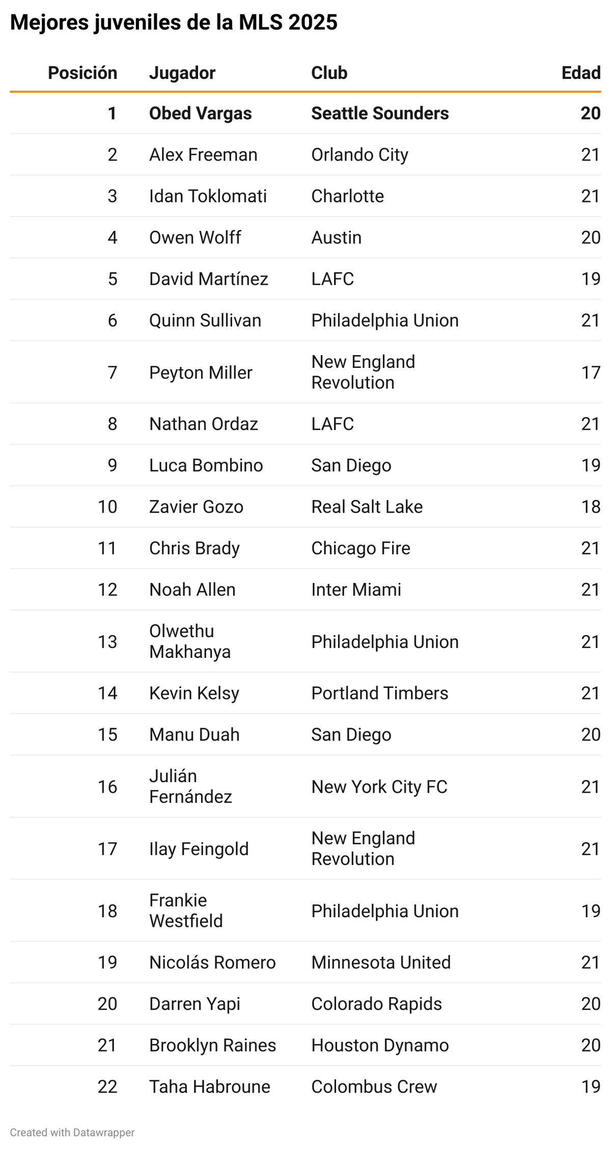Nació en Alaska, pero su corazón eligió a la Selección Mexicana. Se trata de Obed Vargas el centrocampista que ha complementado la gran media cancha de la Selección Mexicana Sub-20 y que este miércoles fue elegido como el mejor jugador juvenil de la MLS de 2025 en la lista de The Best 22 Under 22.