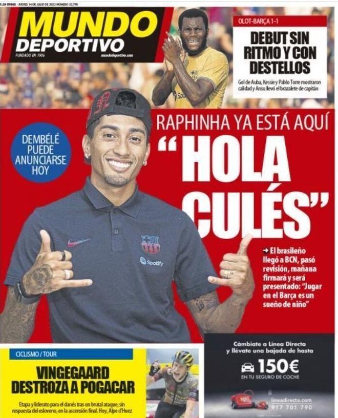 En España uno de los temas que acaparó las primeras planas fue el resultado del amistoso de los culés ante el Olot, el fichaje de Raphinha y algunos temas relacionados con el Real Madrid y Atlético de Madrid.