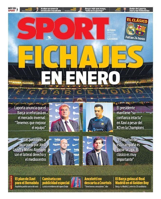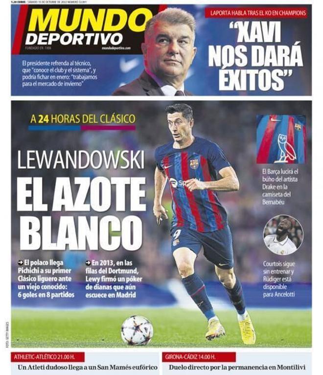 El rotativo Mundo Deportivo publicó en su primera plana varios datos sobre el Barcelona previo al esperado primer Clásico Español de la Temporada 2022.23 de LaLiga.