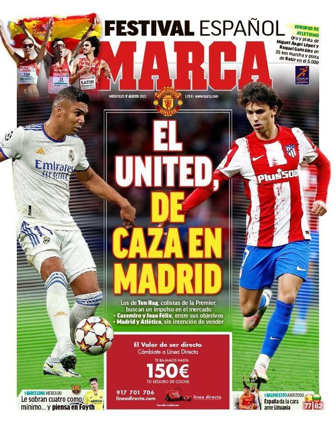 El diario Marca resaltó en su primera plana los objetivos que tendría el Manchester United para reforzarse. El medio de comunicación aseguró que Casemiro y Joao Félix están entre los objetivos de los Red Devils.
