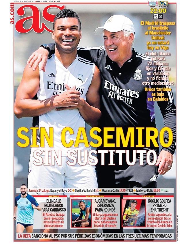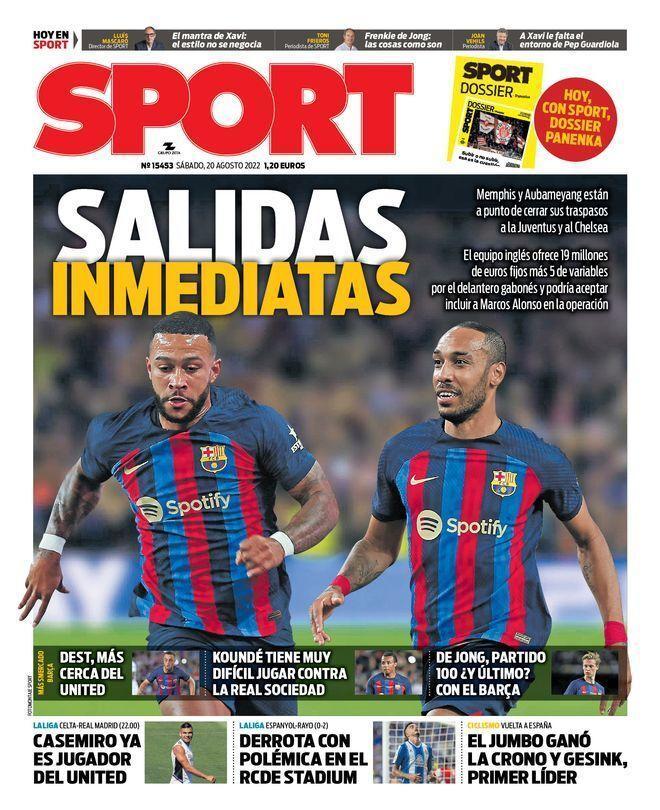 Este sábado 20 de agosto, los medios de comunicación deportivos arrancaron el día con diferentes temas, por ejemplo, en España se publicó detalles del fichaje de Casemiro con el Manchester United y los rumores sobre la salida de jugadores del Barcelona.