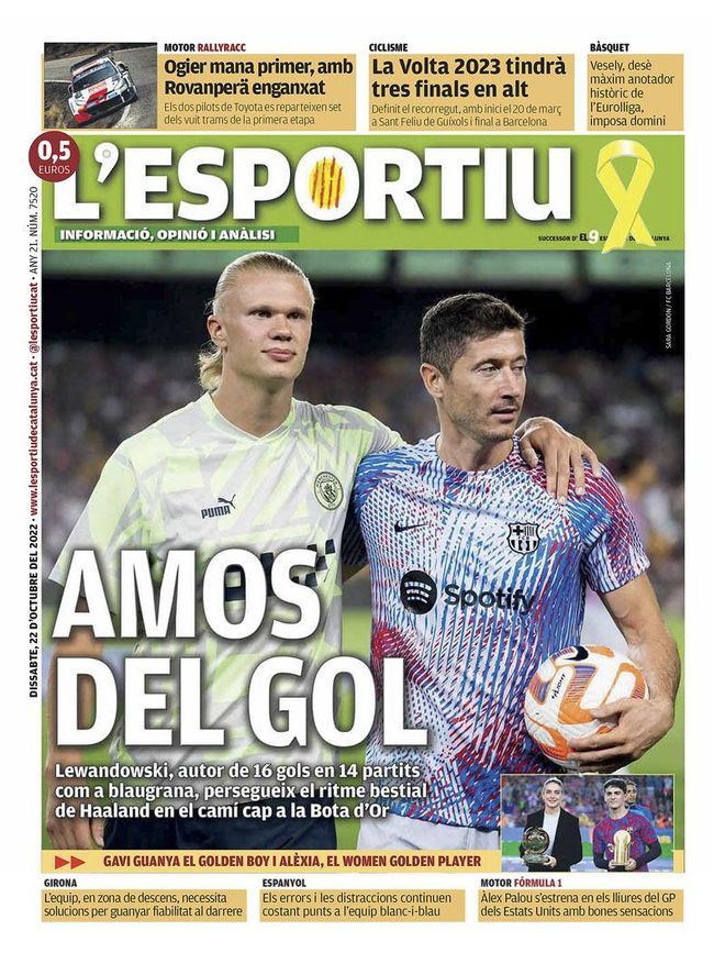 Sport publicó en su portada de este día datos sobre el arranque de temporada de Robert Lewandowski, el cual "está a un paso del mejor inicio goleador de los brasileños Romario y Ronaldo".