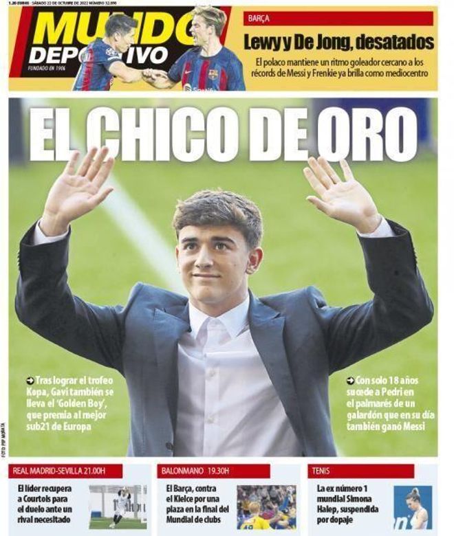 El diario Marca destacó en su portada una imagen Karim Benzema con el Balón de Oro que conquistó hace unos días y que este sábado ofrecerá a la afición del Real Madrid antes de comience el duelo ante el Sevilla en la cancha del Estadio Santiago Bernabéu.