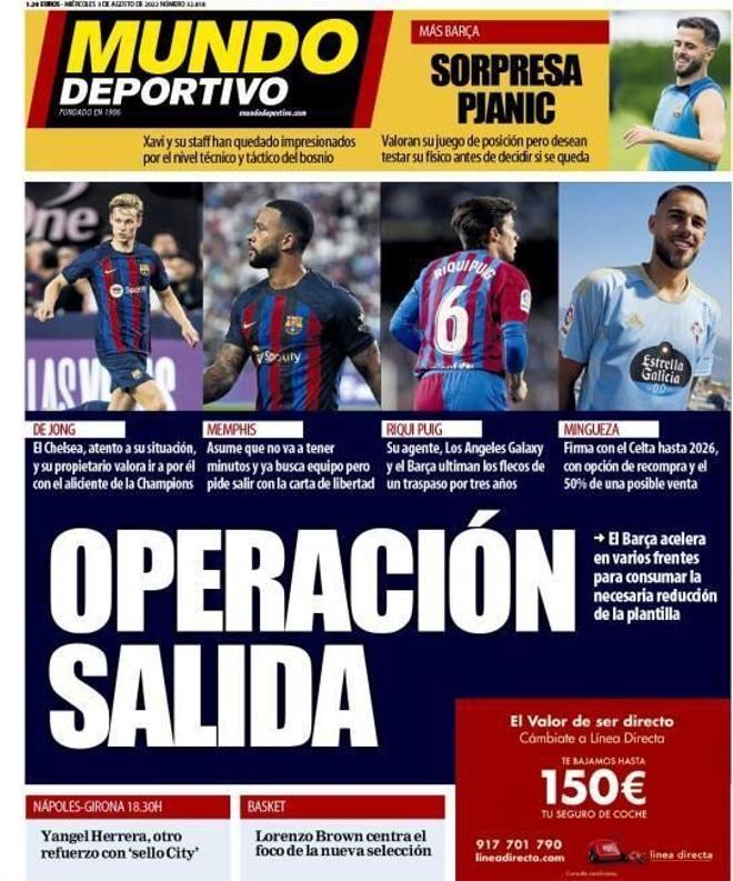 Por su parte, Mundo Deportivo resaltó en su portada los nombres de los jugadores que estarían en la puerta de salida del FC Barcelona, entre ellos están Frenkie de Jong y Memphis Depay.