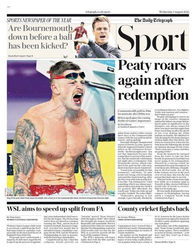 En el Reino Unido, la leyenda de la natación inglesa Adam Peaty se 'robó' la mayoría de las portadas de los medios de comunicación, esto debido a la polémica que generó luego de que realizara un comentario en el que parecía sugerir que los Juegos de la Mancomunidad no importaban.
