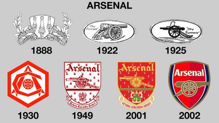 Con el paso de los años, el logo del Arsenal ha tenido varias modificaciones, aunque nunca ha dejado el símbolo artillero, el cual ha cambiado de posición en diferentes ocasiones, pues en algunos escudos apuntó hacia el oeste y en otros al este.