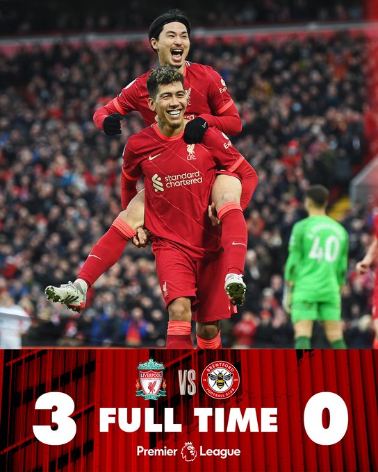 El Liverpool se reencontró con el triunfo después de tres partidos y goleó al Brentford (3-0) para asaltar el segundo puesto de la Premier League, tras superar en puntos al Chelsea, superado el sábado por el líder, el Manchester City.