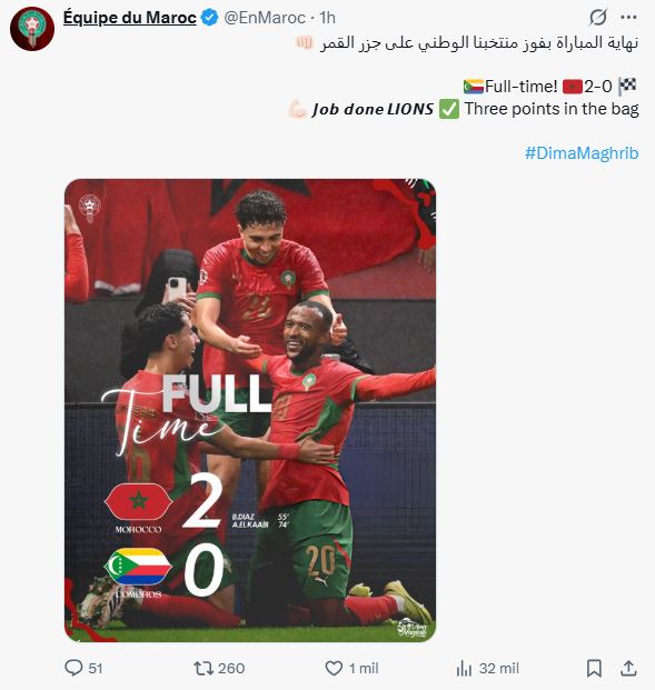 Brahim Díaz y Ayoub El Kaabi fueron los autores de los goles que marcó el país anfitrión ante Comoras.
