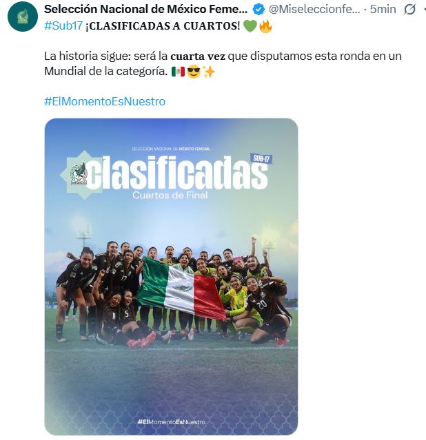 La Selección Mexicana Sub-17 Femenil logró dar un paso muy importante en su camino al título del Mundial de la categoría, el cual se celebra en Marruecos, al superar los Octavos de Final luego de vencer 1-0 a su similar de Paraguay.