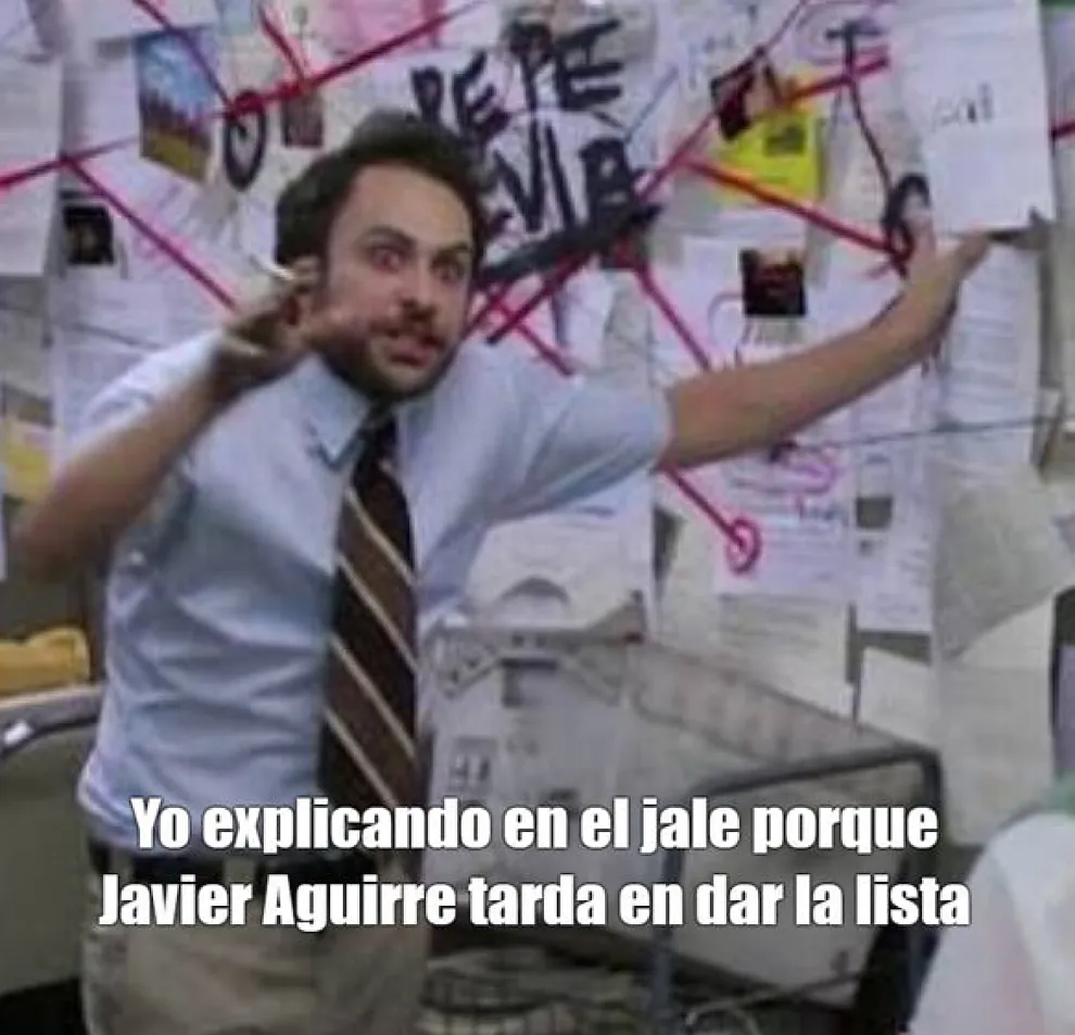 "No puedes ser criticado, si no das la lista de convocados", es una de las frases que aparece en un meme, haciendo mofa de Javier Aguirre. Otro de las imágenes es un esqueleto esperando la lista del Vasco.
