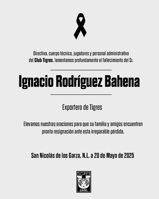 Tigres no se quedó atrás y le mandó un fuerte abrazo a la familia y amigos de Nacho Rodríguez, quien fue portero del equipo en el último suspiro de su carrera.