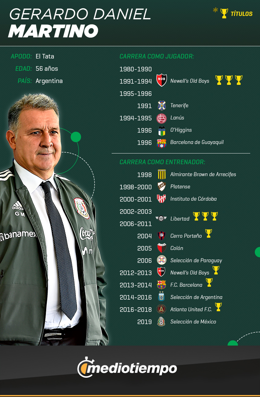 Gerardo "El Tata" Martino debutó como entrenador en Almirante Brown en 1998. A pesar de no tener títulos con selecciones nacionales a nivel de clubes ya cuenta con varios campeonatos en su palmarés, el último con Atlanta United el pasado diciembre.