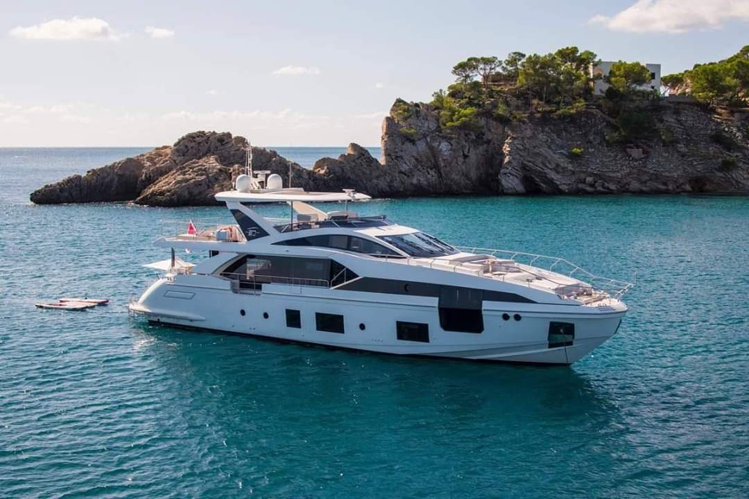 La embarcación, modelo Grande, es de la firma Azimut y cuenta con toda clase de comodidades a lo largo de sus 27 metros de eslora, cuatro suites dobles y un par de camarotes para la tripulación y siete cuartos de baño divididos a lo largo de tres niveles.